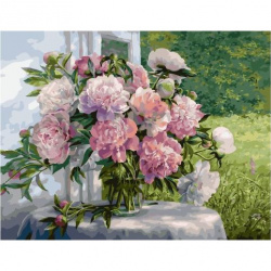 Картина по номерам Премиум PK 59115 (PK 6015) Пионы у окна (Сатаров Михаил) 40*50 см Эксклюзив