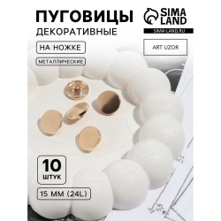 Набор пуговиц на ножке d15мм 10шт металл золотой глянец АУ 10463417
