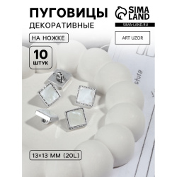 Набор пуговиц на ножке квадрат перламутр 13*13мм 10шт пластик серебр/белый АУ 7386415