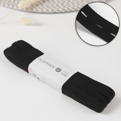 Эластичная лента с отверстиями для пуговиц. Отверстия представляют собой перфорацию, которая имеет фиксированный шаг и размер. Благодаря специальной обработке резинка приобретает дополнительную прочность и не дает усадку в результате стирки. Используется для регулирования размера одежды.
