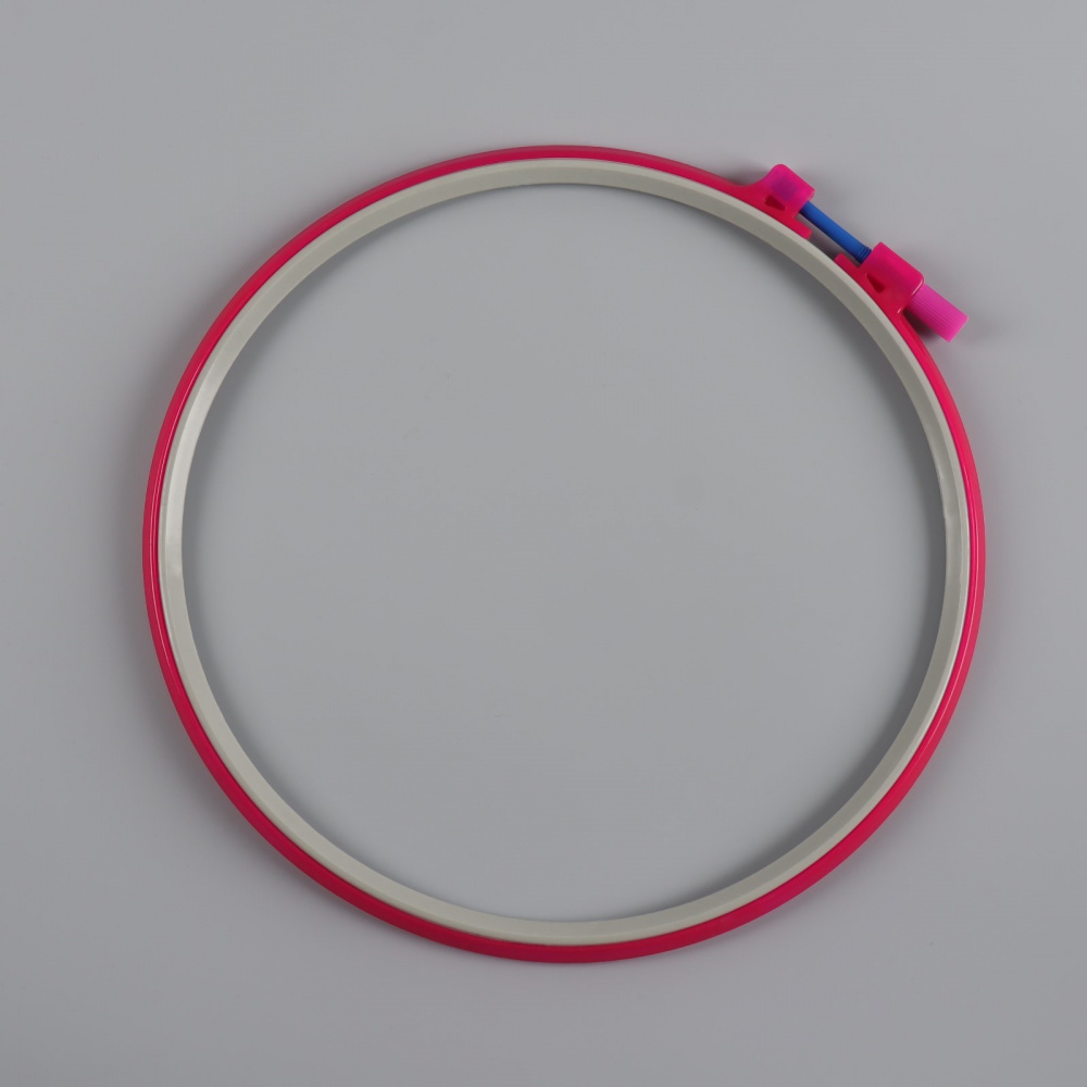 Пяльцы для держания в руках должны быть легкими, желательно толщиной около 0,8-1 см и диаметром не более 20 см. При больших размерах их будет трудно удержать и не очень удобно работать. Пяльцы на стояках могут быть и более тяжелыми (толщиной до 2 см). Для вышивания идеальным будет размер 25 см. В настоящее время можно купить пяльцы рамка круглые (пластиковые или каучуковые) с диаметром 10,5 см и 12 см — для небольших вышивок. Преимуществом такого инструмента для вышивания является хорошее натяжение материала, легкость в перетягивании ткани, недостаток — в образовании трещин в оправе. Также есть деревянные пяльцы с винтами для регулирования длины окружности и толщиной около 0,8 см, а диаметром 18 (для вышивки в руках) или 22 (для вышивки на стенде) и деревянные пяльцы с усиленным механизмов толщиной около 2 см и 25 см в диаметре для вышивания на подставках.